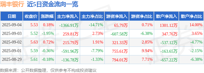 乐鱼在线登录入口证券之星消息,截至2025年9月4日收盘,瑞丰银行(601528)报收于5.53元,上涨0.18%,换手率0.98%,成交量16.92万手,成交额9292.37万元。 9月4日的资金流向数据方面,主力...Read More -